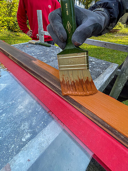 - Grundierung – Auftragen einer geeigneten Holzschutzgrundierung zur Stabilisierung und als Feuchtigkeitsschutz.