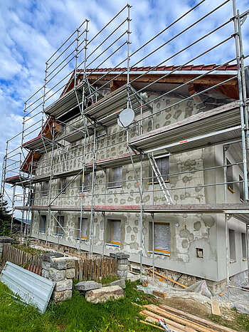 Für einen Bauherren im Landkreis Regen hat MS Malermeister Schreder eine umfassende energetische Sanierung der Fassade umgesetzt. Auf einer Fläche von rund 270 m² wurde die Außenhülle des Gebäudes modernisiert und nach den Vorgaben der KfW-40 Förderung instand gesetzt.